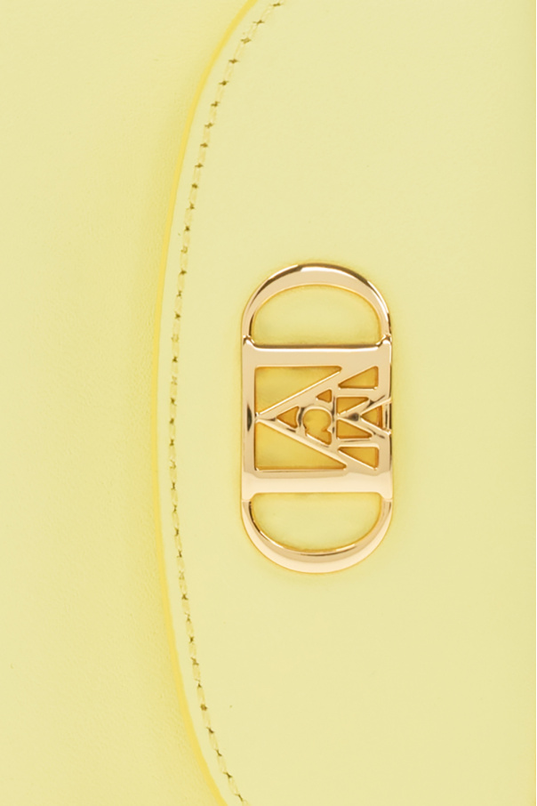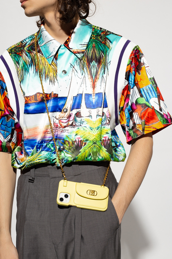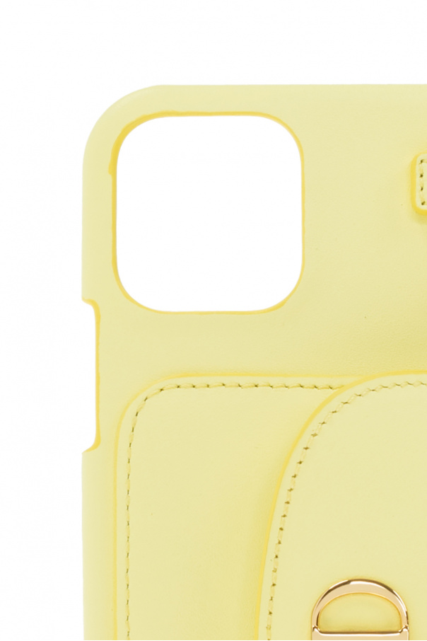 Yellow ‘Mode Mena’ iPhone 12/12 Pro case from MCM. Made of bow leather, this model features a snap-fastened card slot with a logo appliqué at the back, detachable shoulder strap with chain inserts and metal hardware with 24k gold.