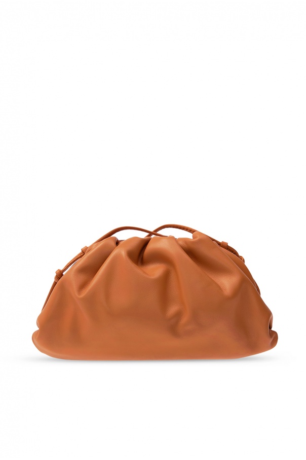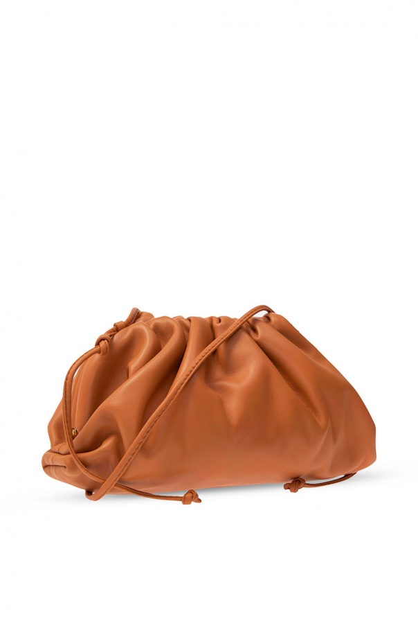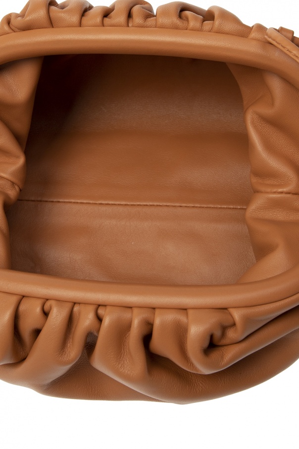 Brown ‘The Mini Pouch’ shoulder bag from Bottega Veneta. Crafted from lambskin, this design is distinguished by decorative gathers and finished with magnetic fastening, leather shoulder strap and one internal compartment.