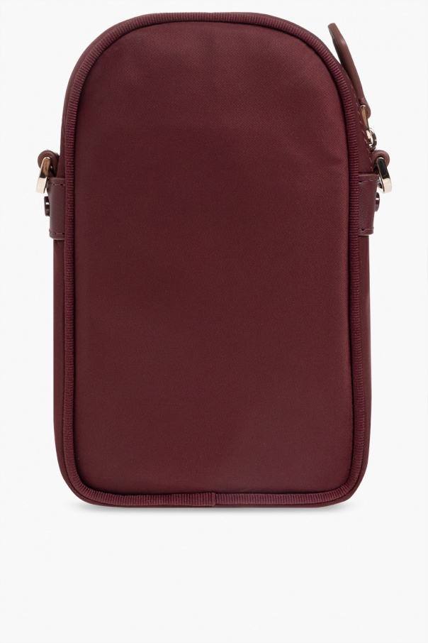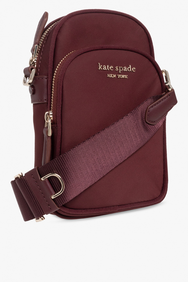 Maroon ‘The Little Better Sam’ phone holder from Kate Spade. With a metal logo plaque decorating the frontal pocket, this design features a zip fastening, a detachable and adjustable shoulder strap, light gold-tone metal hardware and one internal compartment with three card slots.