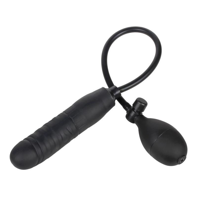 Черный надувной реалистичный фаллоимитатор (с грушей для накачки) из