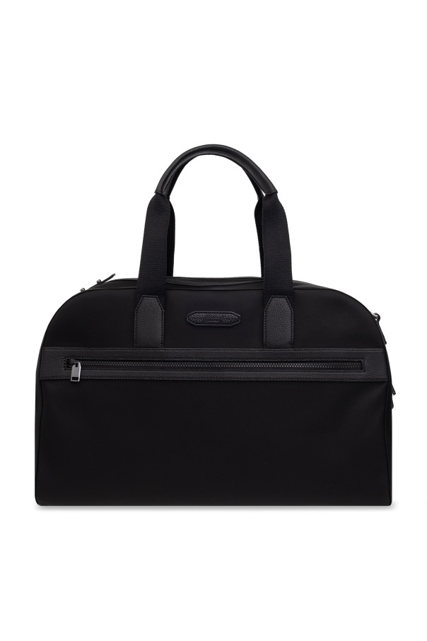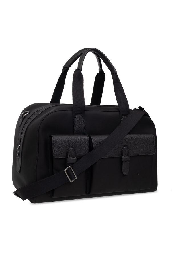 Black holdall bag from Brioni. Fastened with a zip, this model is complete with two half-round handles, a shoulder strap, two pockets with flaps and one closed with a zip, one internal compartment with a slip pocket and zip pocket as well as silver-tone metal hardware.