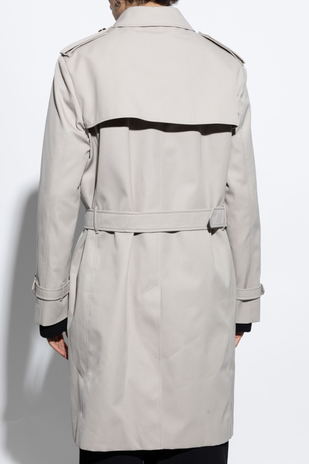Introducing the Belted Trench Coat from the esteemed house of Burberry, a beacon of sartorial elegance since 1856. This exquisite piece, adorned in a refined light gray, offers a harmonious blend of classic style and modern functionality. This trench coat is meticulously crafted with a sophisticated dual-layer design, featuring a robust outer layer of polyester and cotton, complemented by a luxuriously soft inner lining of cupro. Its double-breasted silhouette, accentuated by contrasting buttons, exudes timeless elegance, while the adjustable belt cinches the waist for a flattering fit. Distinctive shoulder epaulettes and adjustable cuff straps enhance its functional allure, alongside a classic storm flap at the back. With two practical pockets, this trench is versatile, effortlessly transitioning from formal to casual ensembles. Why Choose This Product? Elegant light gray color for a timeless appeal. Crafted by the iconic Burberry, synonymous with quality and style. Double-breasted design with contrast buttons and a waist-cinching belt. Functional details: shoulder epaulettes, adjustable cuffs, and a storm flap. Versatile styling for both formal and casual occasions.