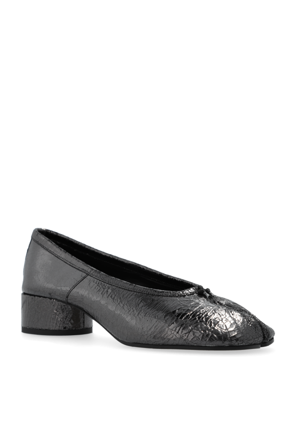 Introduce a touch of sophistication to your wardrobe with the exquisite Tabi Heeled Shoes from the prestigious Maison Margiela collection. These shoes epitomize a harmonious blend of classic elegance and avant-garde design, making them an essential addition for the discerning fashion connoisseur. Crafted from premium leather, the Tabi Heeled Shoes feature a sleek, lightly textured surface with a subtle sheen, exuding an air of understated luxury. The classic closed shape, combined with a distinctive seam on the front, draws inspiration from traditional Japanese Tabi footwear, creating a unique and eye-catching aesthetic. Designed with a low, wide heel, these shoes provide unparalleled stability and comfort, ensuring you can stride with confidence throughout your day. The minimalist finish, accentuated only by the elegant front seam and the designer\'s name embossed on the inner sole, speaks volumes about the meticulous attention to detail and refined craftsmanship. Why Choose This Product? High-quality leather construction for durability and a sophisticated look. Unique design inspired by traditional Japanese Tabi shoes. Comfortable low, wide heel for all-day wear. Minimalist aesthetic with subtle, luxurious details. Versatile style suitable for both casual and formal occasions.