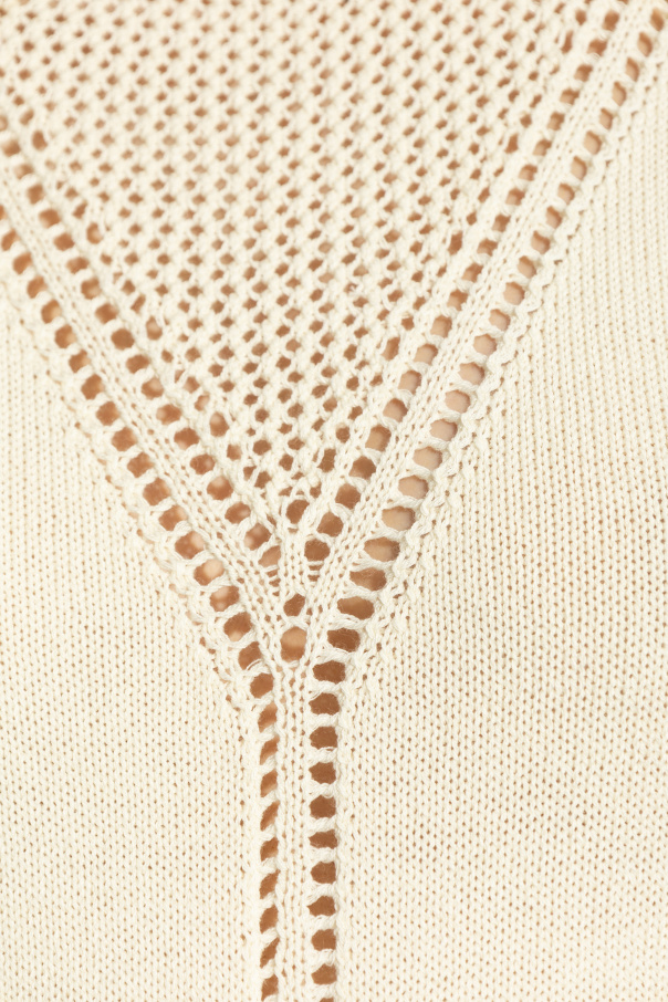 Discover the epitome of refined elegance with JIL SANDER\'s knitted dress, a masterpiece that marries comfort with sophistication. Crafted from a luxurious blend of wool and cotton, this calf-length dress boasts a creamy, light yellow hue that exudes a serene and delicate charm. The dress features short sleeves and a classic round neckline, ensuring a timeless silhouette. The dress\'s distinctive character lies in its detailed, symmetrical openwork pattern along the body line. This meticulously crafted design not only adds an intriguing texture but also visually elongates the figure, creating an illusion of slenderness. The precision and delicacy of the pattern are evident up close, highlighting the exceptional craftsmanship that defines JIL SANDER\'s creations. Its soft and stretchy material promises ease of wear, making it an ideal choice for those who value both style and comfort. The continuity of the openwork pattern on the back of the dress attests to the attention to detail, ensuring that its allure is appreciated from every angle. Why Purchase This Dress? Elegant Design: The calf-length and round neckline offer a classic, flattering silhouette. Unique Textural Detail: The symmetrical openwork pattern enhances the dress\'s visual appeal and flatters the figure. Luxurious Material: Made from a blend of wool and cotton, the dress promises softness and stretch for optimal comfort. Attention to Detail: The meticulous craftsmanship, as seen in the precision of the openwork pattern, speaks volumes of its exceptional quality.