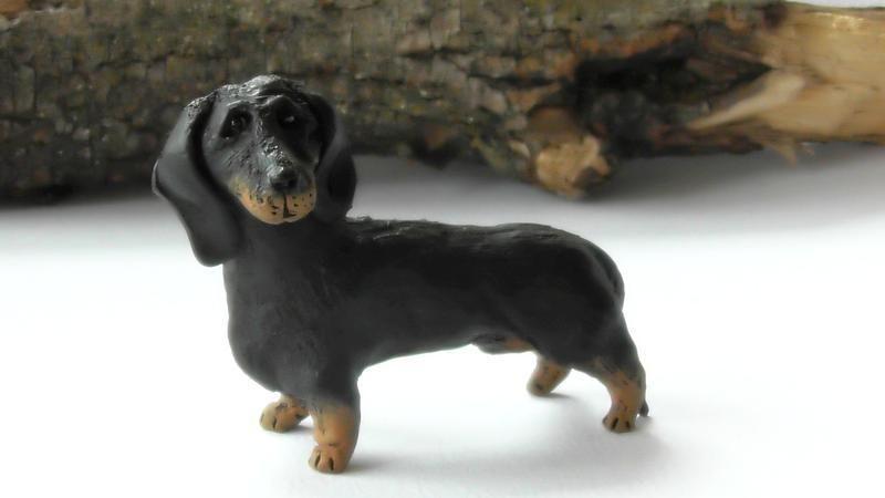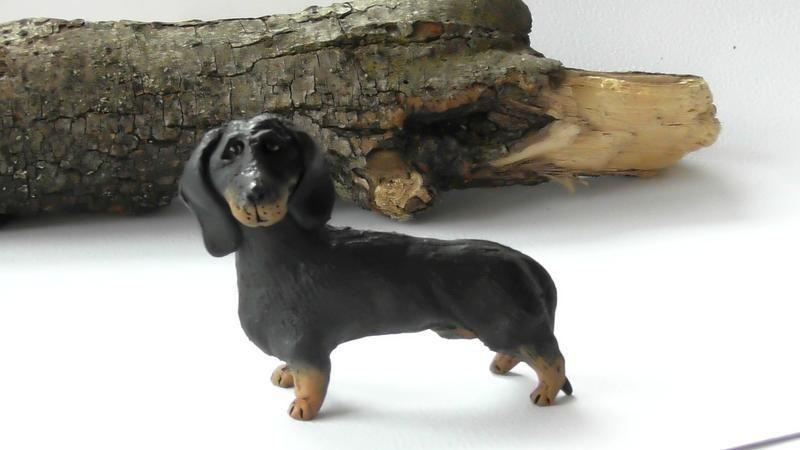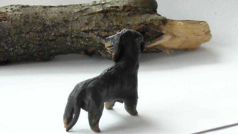 Авторская, керамическая статуэтка в виде таксы, ручной работы.