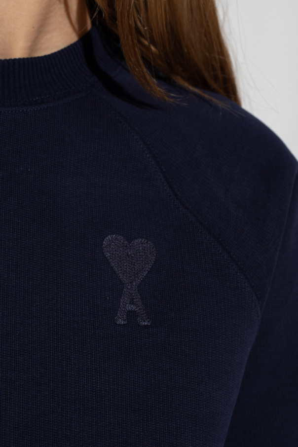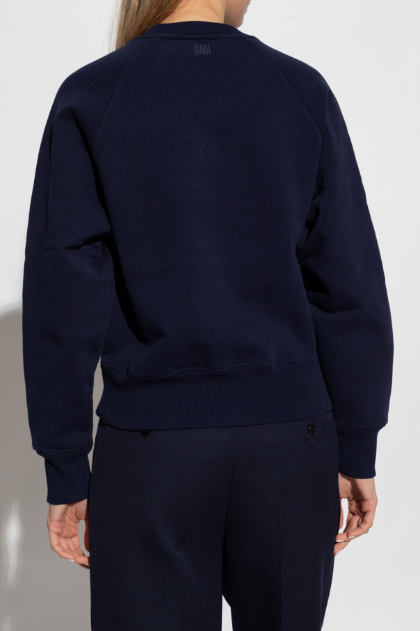 Navy crewneck sweatshirt from Ami Alexandre Mattiussi. Crafted from cotton, this design features logo embroideries and long sleeves with ribbed cuffs.