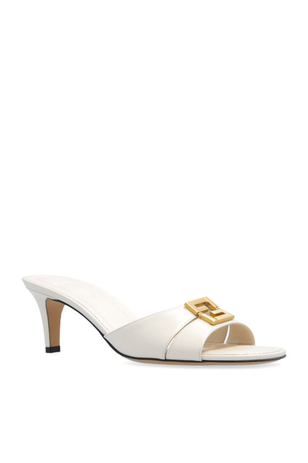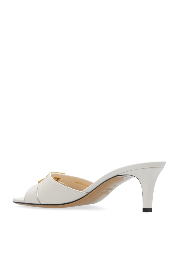 Introducing an epitome of sophistication and luxury - the Fendi Cream Heeled Slippers. These slippers are a testament to the artistry and elegance that define the iconic Fendi brand. Crafted from the finest calfskin leather, these slippers exude a creamy hue that radiates understated elegance. The allure of these heeled slippers is accentuated by a delicate, rounded heel that perfectly balances comfort with style. The front of the slipper showcases a broad strap that gracefully envelops the toes, while a golden, aged-logo metal appliqué sits at the center, serving as a mark of luxury and distinction. The interior of the slipper is lined with soft leather, ensuring unparalleled comfort. The sole, also made of leather, bears the embossed Fendi logo, subtly asserting its prestigious origin and craftsmanship. Whether worn as part of a complete ensemble or as a standalone statement piece, these slippers are designed to captivate and charm. Why Purchase This Product? Made from premium calfskin leather for durability and elegance. Features a unique golden, aged-logo metal appliqué for a touch of exclusivity. Designed with a comfortable yet stylish rounded heel. Embellished with the embossed Fendi logo on the sole, highlighting the luxury brand\'s essence. Ideal for those who appreciate the finer details and superior quality of luxurious footwear.