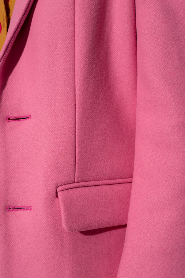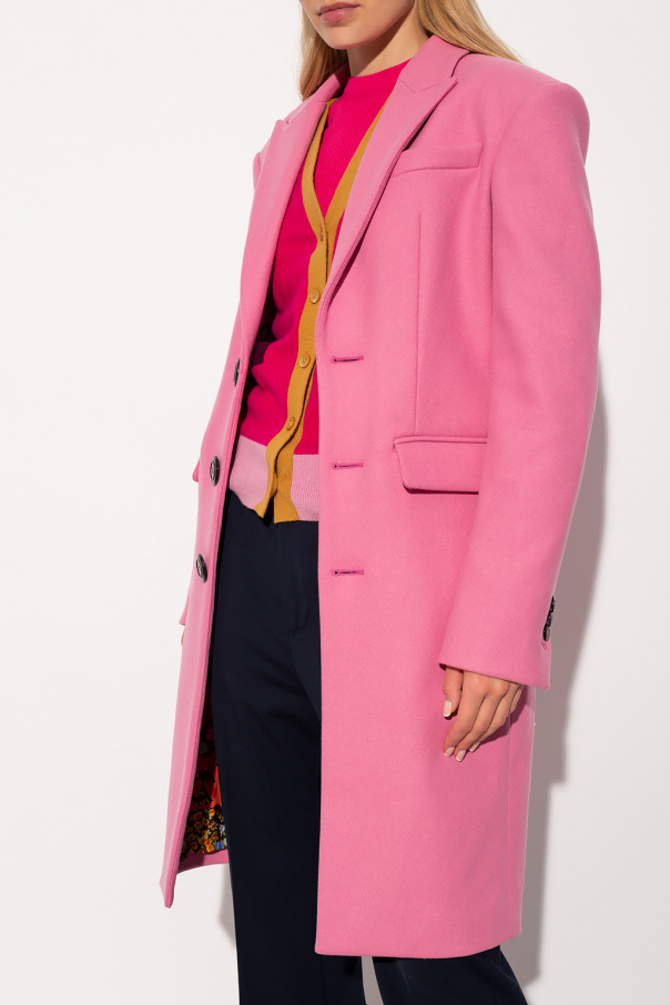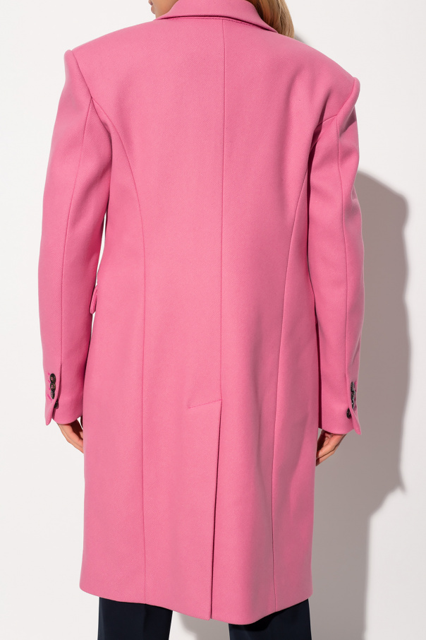 Pink coat from Dsquared2. Crafted from wool, this style fastens via buttons and features peak lapels, three pockets on the front (including two flapped ones), long sleeves, a single back vent and a brown lining decorated with a colourful floral print accompanied by the label\'s logo.