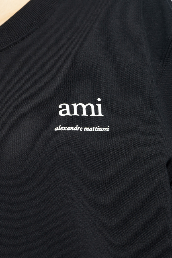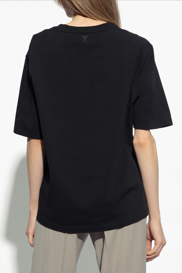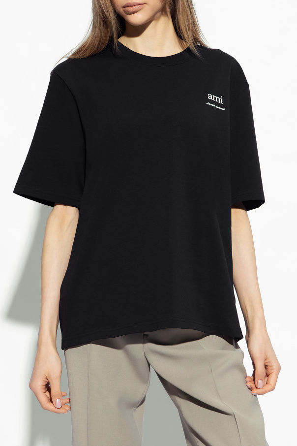 Black crewneck T-shirt from Ami Alexandre Mattiussi. Made from organic cotton with the GOTS certificate, this style showcases a white rubberised logo application on the front, short sleeves and ribbing on the collar.