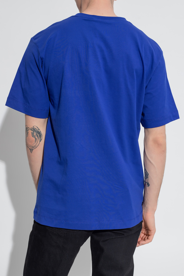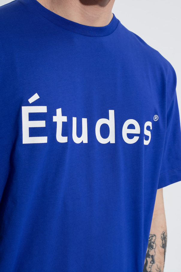 Dark blue crewneck T-shirt from Etudes. Crafted from organic cotton, this style features short sleeves, an elasticated collar and a printed white logo on the front.