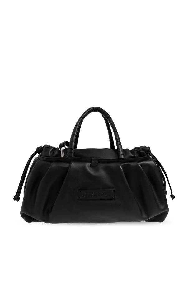 Introducing the epitome of sophistication and practicality, the Casadei Leather Shoulder Bag. This exquisite accessory, crafted from the finest black leather, exudes luxury and durability. Its rectangular shape, slightly rounded with ruched sides, presents a modern and elegant silhouette that is sure to captivate. The front of the bag proudly features an embossed logo, a hallmark of the designer’s prestigious brand. Equipped with two sturdy, leather-wrapped handles for hand-carrying and an additional adjustable shoulder strap, this bag offers versatile carrying options. A secure zipper closure ensures your belongings are safely stored. Inside, the spacious main compartment accommodates all your essentials, while a zippered pocket provides a secure space for your valuable items. The bag’s black hue makes it a versatile addition to any wardrobe, seamlessly complementing various styles. Why Choose This Product? Exquisite Craftsmanship: Made from high-quality black leather. Stylish Design: Modern rectangular shape with ruched sides. Versatile Use: Multiple carrying options with hand handles and an adjustable shoulder strap. Secure Storage: Zipper closure and interior zippered pocket. Iconic Branding: Features the renowned embossed logo.