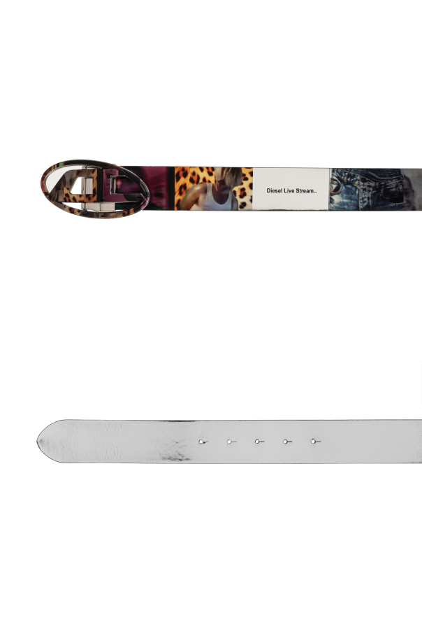 Introducing the Reversible Belt \'OVAL\' from Diesel\'s exclusive collection. This unisex accessory epitomizes the perfect blend of artistry and elegance, designed to complement a variety of styles with its versatile nature. The belt features a classic wide shape, with one side showcasing a vibrant, multicolored collage of images and graphics, including dynamic animal prints such as leopards. The reverse side, in stark contrast, boasts a pristine white hue, offering duality in wearability. Crafted from premium leather or high-quality leather-like material, this belt promises both durability and a luxurious feel. The distinctive oval buckle, adorned with a prominent metallic centerpiece and designer initials or logo, adds a touch of prestige and serves as a signature element of the brand. Why Choose This Product? Versatile Design: Reversible with a multicolored graphic side and a plain white side. High-Quality Material: Made from premium leather or a leather-like material for durability and luxury. Distinctive Buckle: Features an elegant oval buckle with a metallic centerpiece and designer initials. Stylish and Universal: Suitable for both casual and elegant outfits. Unisex Appeal: Perfect for anyone looking to enhance their wardrobe with a sophisticated accessory.