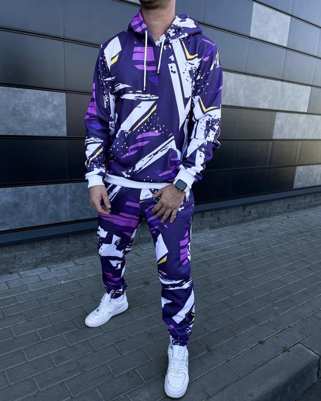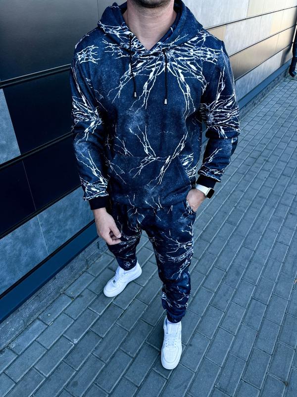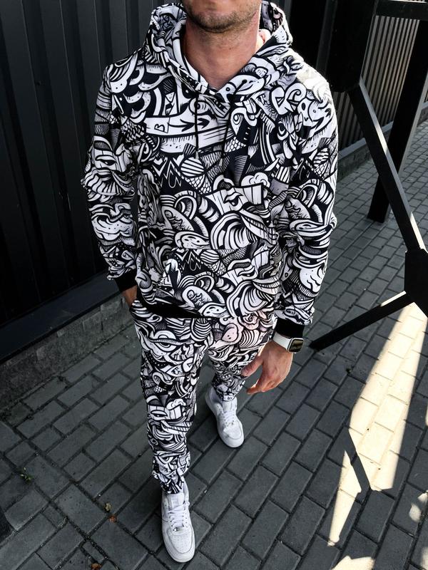 Чорно білий чоловічий спортивний костюм теплий на флісі