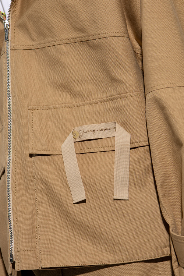Brown ‘Molhado’ jacket from Jacquemus. Made of cotton, this garment features a detachable hood with drawstrings and snap buttons, two zip pockets, two snap-fastened pockets and long sleeves with snap-fastened tabs.
