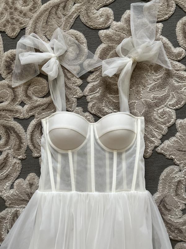 Біле плаття для справжніх принцес! Було одягнено один раз, стан ідеальний. Зріст моделі 173, розмір m. Якщо є якісь питання, звертайтесь!