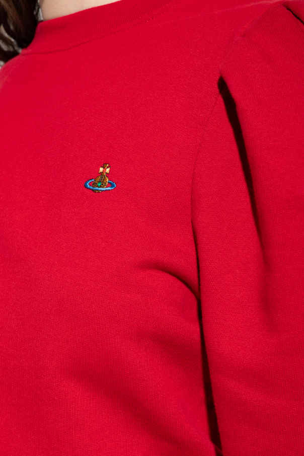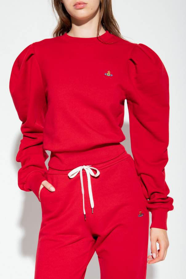 Red crewneck sweatshirt from Vivienne Westwood. Crafted from cotton jersey, this style features colourful logo embroidery on the front, long puff sleeves and ribbed trims on the edges.