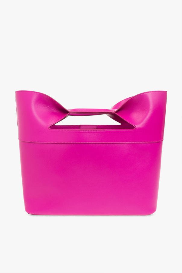Pink shopper bag from Alexander McQueen. Fastened with a magnetic snap, this model features a logo pattern, two half-round handles, one internal compartment and gold-tone metal hardware.