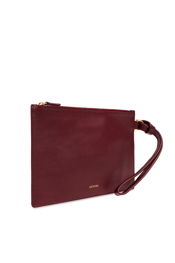 Introducing the ‘The Charlie’ Leather Clutch by LIÉ STUDIO, an epitome of elegance and sophistication. Meticulously crafted from high-quality burgundy leather, this rectangular clutch is a testament to minimalist design with a timeless appeal. The exterior, made from smooth, luxurious leather, exudes opulence. The clutch\'s interior is lined with beige material, providing a striking contrast that enhances its overall elegance. The front is adorned with a subtle gold designer logo, harmonizing perfectly with the gold zipper, adding a touch of refined glamour. For added convenience, ‘The Charlie’ features a detachable wrist strap crafted from the same exquisite burgundy leather. Inside, a leather pocket embossed with the designer\'s logo underscores the authenticity and meticulous attention to detail characteristic of LIÉ STUDIO. Why Choose This Product? Luxurious high-quality leather construction Timeless and minimalist design Elegant gold accents Detachable leather wrist strap for versatility Authentic designer details