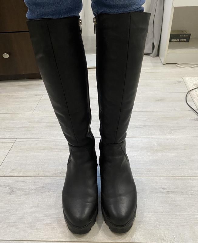 Матеріал верху:Шкіра ,Висота каблука:Низький ,Висота виробу:Високі ,Халява:Вузька ,Сезон:Зима , Осінь ,Матеріал підкладки:Овчина , Фліс ,Тип підошви:Платформа ,Довжина устілки:24,5 см ,Опис