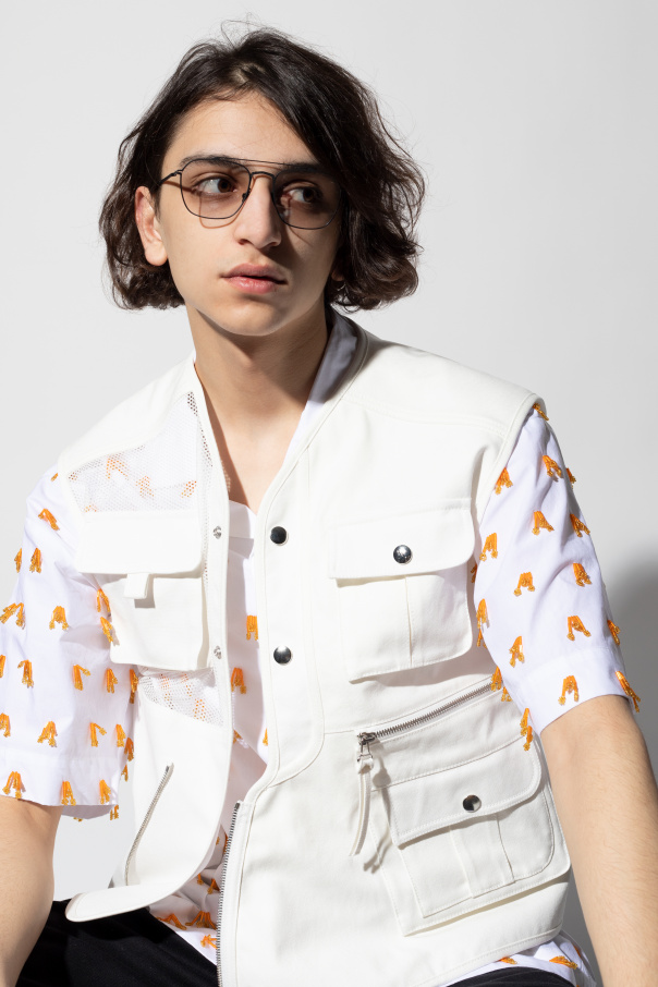 Black ‘MMCRAFT006’ sunglasses from Mykita X Maison Margiela. Emblazoned with the brand\'s logo, they feature certified light grey lenses with UVA/UVB protection. This pair comes with a light grey protective case accentuated with the brand\'s logo