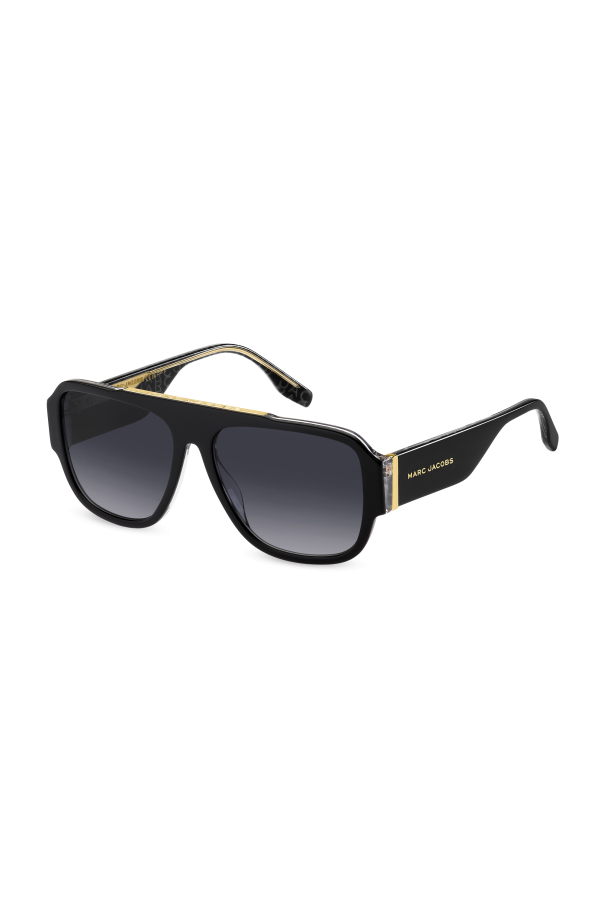 Introducing an epitome of sophistication and timeless style - the Marc Jacobs Men\'s Sunglasses. Crafted with an eye for detail, these sunglasses feature a commanding black frame with a distinctive rectangular finish, reminiscent of the classic aviator silhouette yet with a modern twist. The large, wide lenses with a subtle gradient from a darker top to a slightly lighter bottom not only elevate your style but also ensure optimal vision clarity. The construction of these sunglasses is enhanced by luxurious gold accents on the temples and at the points where the temples meet the frame, imbuing the design with an air of exclusivity. Each piece is meticulously designed with curved temple tips for a snug and comfortable fit, showcasing the blend of aesthetic appeal and functionality. The presence of Marc Jacobs\' signature on the temple serves as a hallmark of quality and designer prestige. Made from 100% Acetate, these sunglasses are not only stylish but also durable, designed to withstand the test of time. The grey lenses are equipped with UV category 3 protection, shielding your eyes from harmful rays while maintaining a crystal-clear vision. Each pair comes with a branded case, ensuring your sunglasses are protected in style. Why Purchase This Product? Elegant design with a modern twist on the classic aviator style. Exquisite gold detailing adds a touch of luxury. Signature of renowned designer Marc Jacobs. Durable construction with 100% Acetate. High-level UV protection for your eyes. Included designer case for stylish protection.