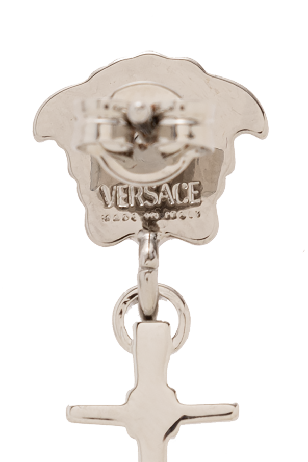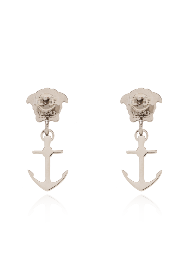 Silver-tone earrings from Versace. Made from brass, they fasten via clasp closures and showcase the brand\'s signature Medusa face and anchor charms.