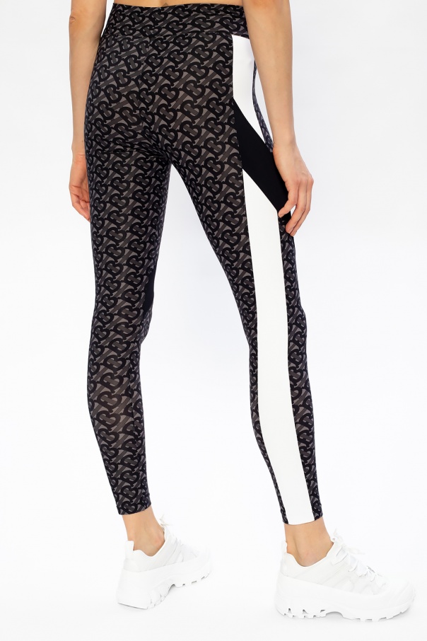 Grey, white and black leggings from Burberry. Printed with an all-over monogram pattern, this pair is complete with an elasticated waistband.