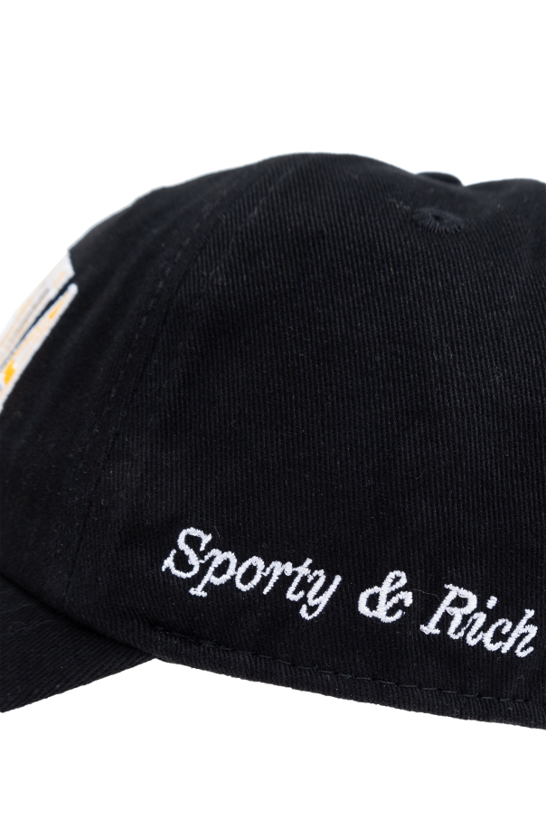 Introducing the quintessence of coastal flair - the California Cap by Sporty & Rich. Crafted from premium 100% cotton, this black cap epitomizes durability and comfort, ensuring a steadfast companion on your sun-drenched adventures or casual city excursions. The cap\'s classic silhouette, accentuated by a gracefully rounded visor, offers a timeless appeal. The front of the cap proudly displays an embroidered inscription of \"CALIFORNIA\" in vibrant yellow and white hues, providing a striking contrast that catches the eye. This detail not only adds a pop of color but also pays homage to the iconic state\'s vivacious spirit. On the right side, an additional embroidered detail \"Sporty & Rich\" in white thread elegantly signifies the brand\'s distinguished identity. Functionality meets style with the cap\'s adjustable strap, finished with a sleek metal buckle, allowing for a tailored fit to accommodate individual preferences. Moreover, the rear silhouette cut-out of California, situated above the strap, serves as a subtle, yet captivating nod to the cap\'s inspiration. Why Purchase This Product? Exclusive Design: Immerse yourself in the luxury of a piece that balances sophistication with a sporty edge. Adjustable Comfort: Achieve the perfect fit with an easily adjustable strap, ensuring comfort for all-day wear. Signature Details: From the embroidered \"CALIFORNIA\" to the \"Sporty & Rich\" side inscription, these unique elements define the cap\'s luxury status. Versatile Styling: The cap\'s classic black hue and elegant design make it a seamless addition to any wardrobe, elevating your ensemble with a touch of exclusivity.