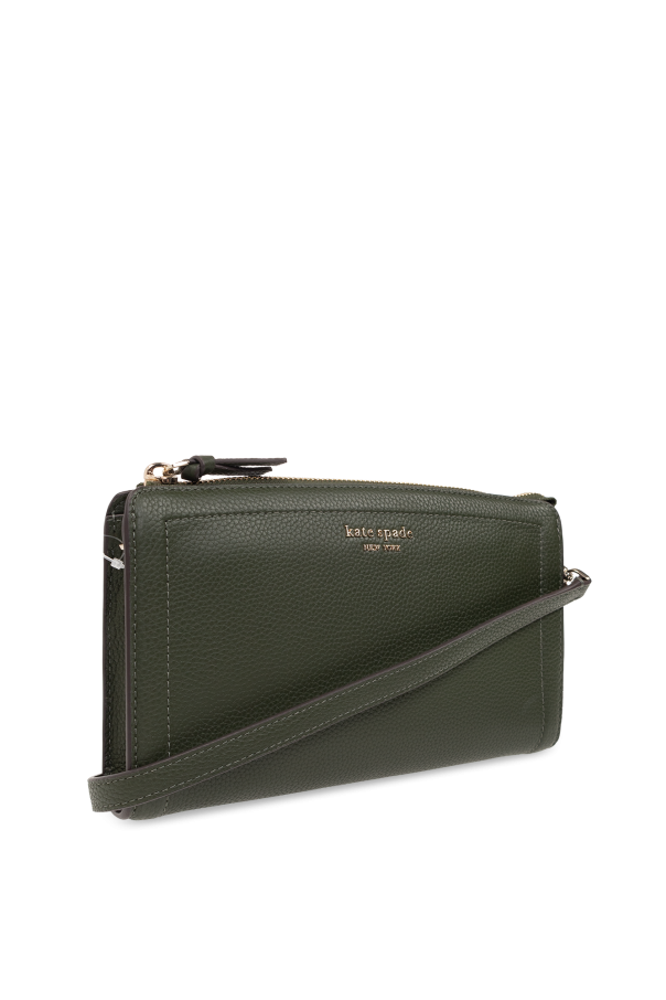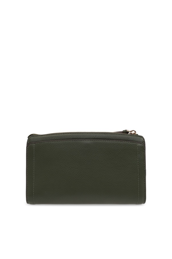Dark green ‘Knott Small’ shoulder bag from Kate Spade. Made of leather, this model fastens with a zip and is decorated with a metal logo. It is complete with a back pocket with a magnetic snap, detachable and adjustable shoulder strap, gold-tone metal hardware and one internal compartment with one slip pocket and one zip pocket.