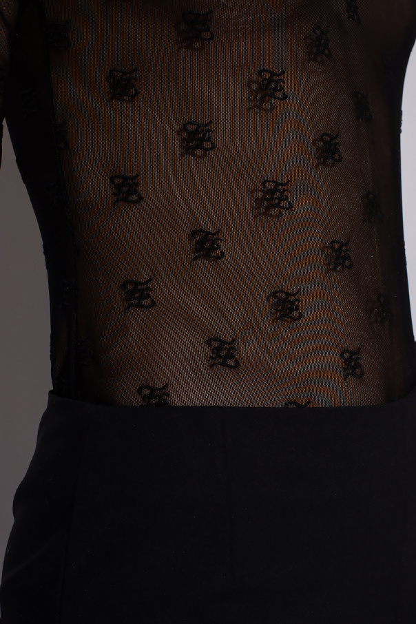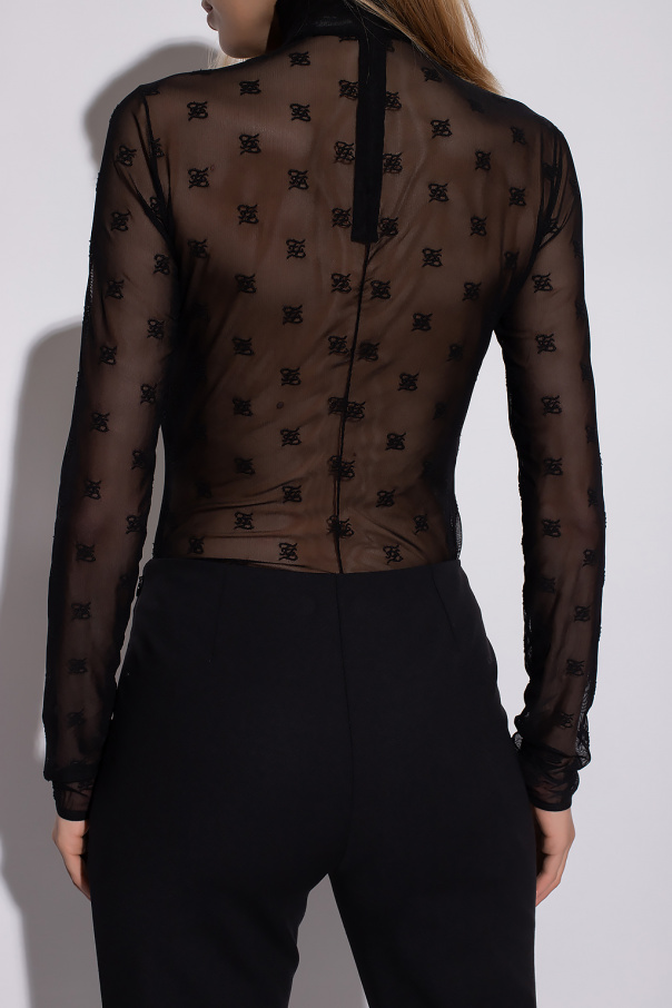 Black transparent body with a high neck from Fendi. Fastened with zip and snaps, this long sleeve design features a logo embroidery and comes with a drawstring dust bag.