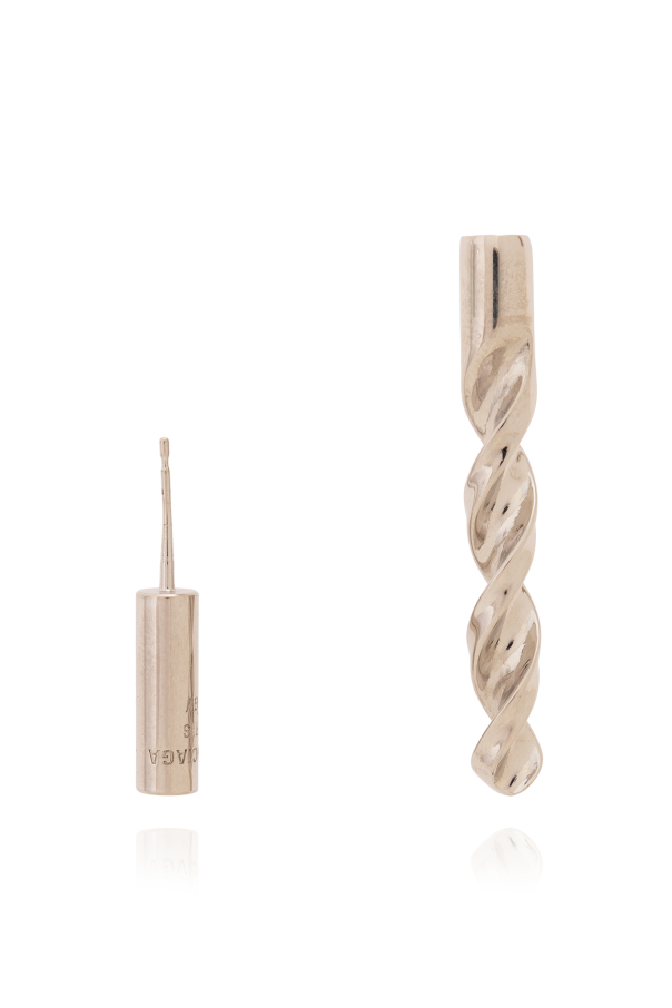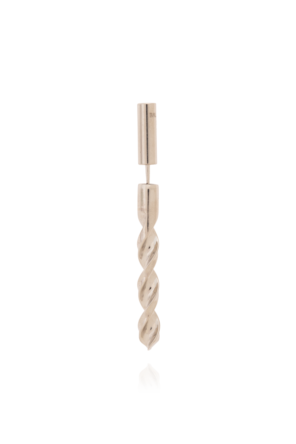 Introducing the quintessence of modern elegance and avant-garde design: the Balenciaga Single Long Earring. This exquisite piece, with its dominant silver hue, is crafted from the finest 100% brass, ensuring both durability and a luxurious sheen. The earring\'s distinctive spiral shape, reminiscent of a twisted ribbon, exudes sophistication and a sense of dynamism, making it a statement piece par excellence. The surface of the earring is meticulously polished, reflecting light in a way that accentuates its intricate form and the precision of its design. At the apex of this spiraling marvel, the designer\'s signature is delicately engraved, a hallmark of Balenciaga\'s commitment to quality and exclusivity. When worn, this singular accessory cascades elegantly, likely reaching the shoulder, akin to the unconventional categorization of \"long sleeve\" in its length, presenting a silhouette that is both striking and flattering. Additional imagery showcases the earring from various angles, offering a comprehensive view of its three-dimensional shape and the exquisite detailing of the designer\'s inscription. Whether viewed up close or from afar, the Balenciaga Single Long Earring is a testament to the artistry and vision of its creator, making it a must-have for those who covet fashion-forward accessories. Why Purchase This Product? Exclusive Design: A unique, spiral silhouette that stands out in any ensemble. High-Quality Materials: Made from 100% brass for lasting shine and durability. Luxurious Detail: Features the engraved Balenciaga logo, symbolizing designer quality. Versatile Elegance: Perfect for adding a touch of sophistication to both day and evening wear.