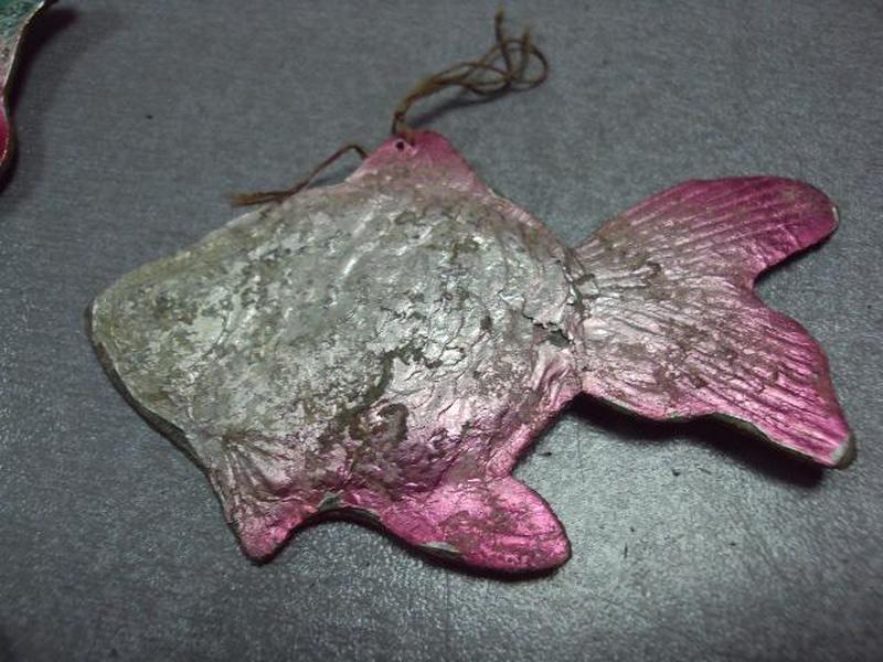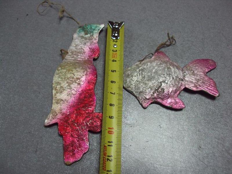 Елочная игрушка подвесная картонаж попугай и рыба рыбка ссср лот 2 шт №10800