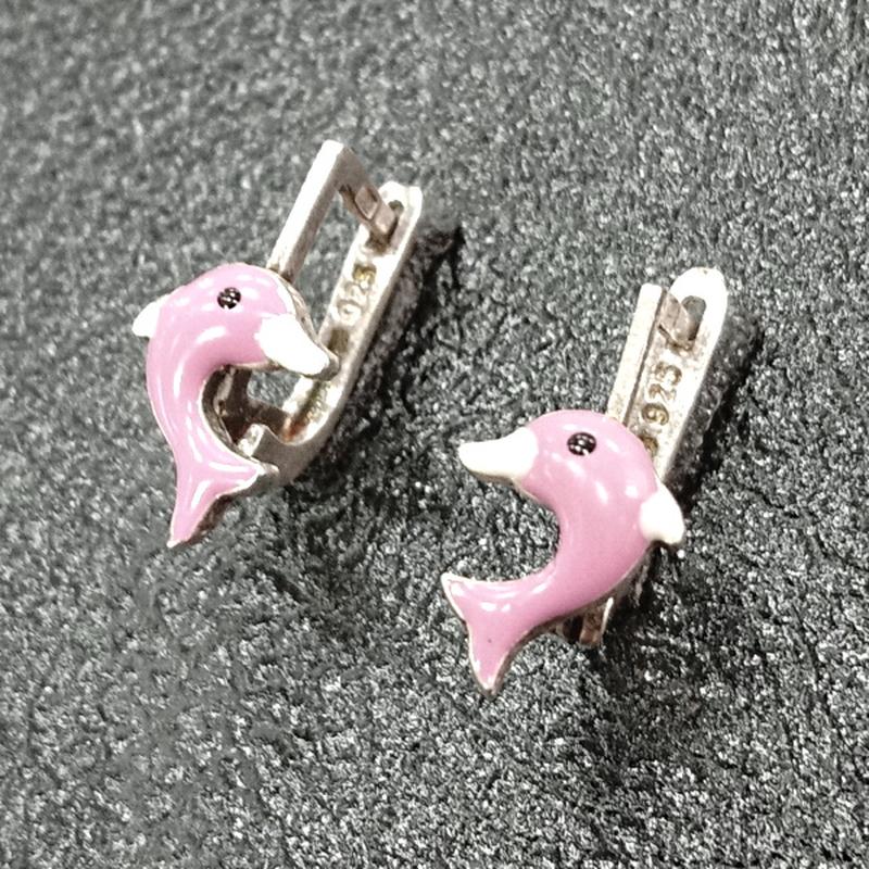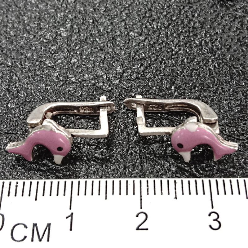 Детские серебряные серьги дельфинчики с заливкой из эмали