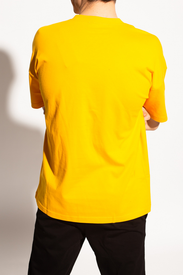 Yellow crewneck T-shirt from EA7 Emporio Armani. Made of cotton, this garment is enriched by a navy logo print.