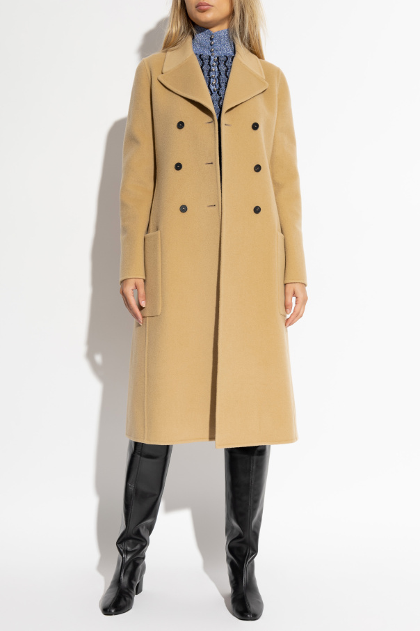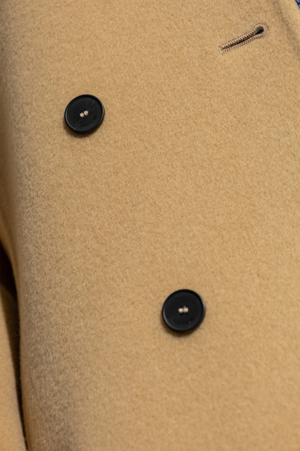 Introducing the epitome of sophistication, the Wool Coat by Lanvin. This exquisite beige coat, crafted from the finest wool and cashmere, encapsulates timeless elegance and unparalleled warmth. The coat features a classic, straight cut that gracefully falls below the knees, accentuated by a double-breasted button closure. The smooth, unembellished fabric exudes a minimalist charm, making it an ideal choice for any refined wardrobe. Designed with a versatile wide collar, this coat can be styled in multiple ways, offering a variety of sophisticated looks. The contrasting dark buttons provide a striking detail against the soft beige hue, while the two spacious side pockets positioned at the hip add both functionality and flair. Effortlessly elegant, the back of the coat remains simple and unadorned, underscoring a sleek, minimalist aesthetic. On closer inspection, the high-quality buttons and the fine texture of the material reveal the meticulous craftsmanship synonymous with the Lanvin name. Why Buy This Product? Timeless design by Lanvin, a storied Parisian fashion house established in 1889. Luxurious blend of wool and cashmere for superior warmth and softness. Versatile wide collar for multiple styling options. Elegant double-breasted button closure with contrasting dark buttons. Minimalist design with practical side pockets.