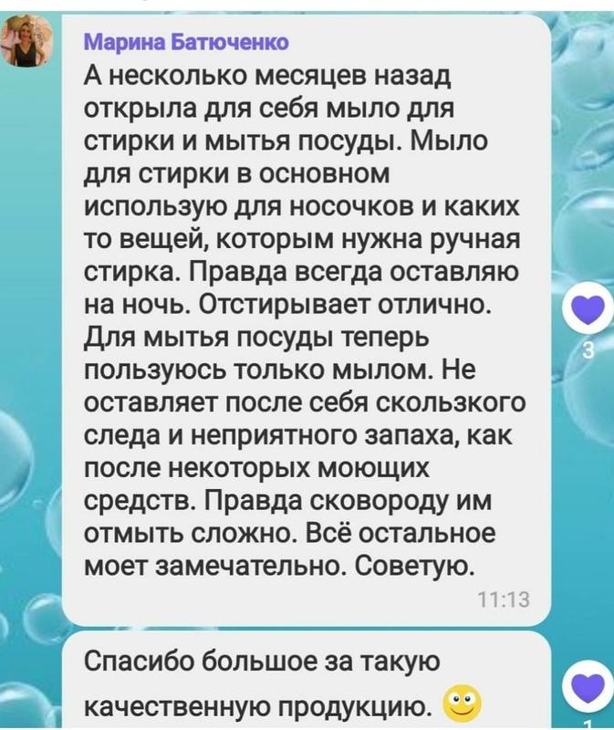 3. Мило для прання з посиленою формулою, аромат м'яти чи лавандиМило натуральне, виготовлене шляхом природнього омилення кокосової олії преміум якості за власними рецептурами, адаптованими для гарної роботи миючого засобу в жорсткій воді. Вага 150 г. Брусок циліндричної форми.