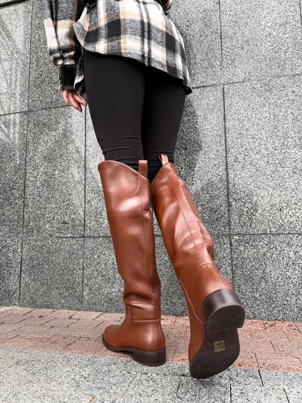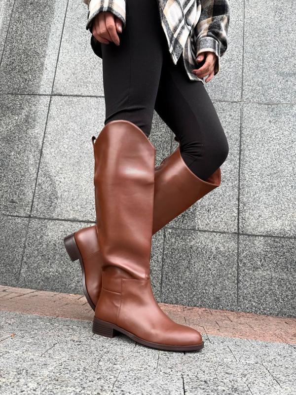 Матеріал верху:Шкіра ,Висота каблука:Низький ,Висота виробу:Високі ,Халява:Широкая ,Сезон:Осінь , Весна , Демісезон ,Матеріал підкладки:Фліс ,Тип підошви:Каблук , Пласка ,Довжина устілки:25,5 см , 25 см , 24,5 см , 23,5 см , 24 см , 26 см , - Shipping