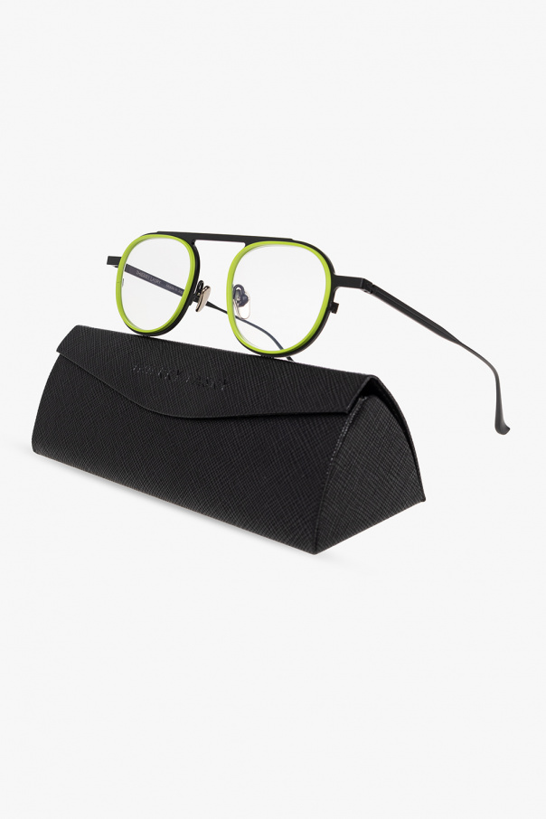 Black and green ‘Anomaly’ optical glasses from Thierry Lasry. Handcrafted in Japan from titanium, this model comes with a protective case.