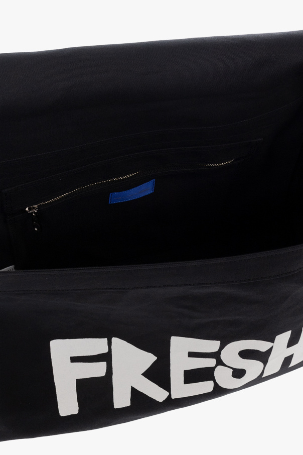 Black shopper bag from Comme des Garcons Shirt. Crafted from cotton, this design showcases a white ‘Fresh’ print on the front, two straps (one is shorter) and one internal compartment with a zip pocket.