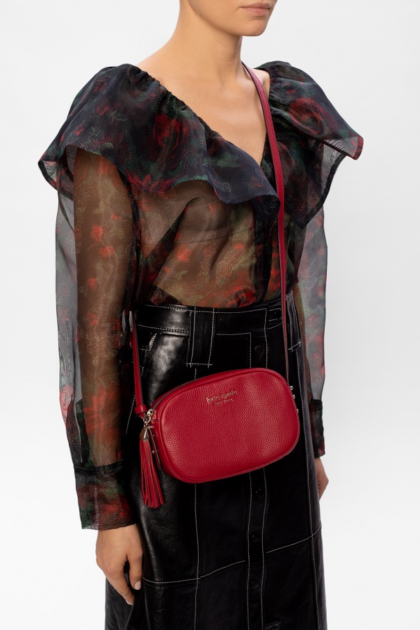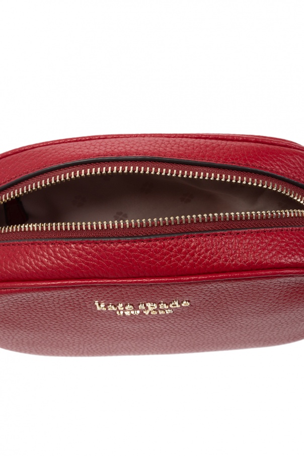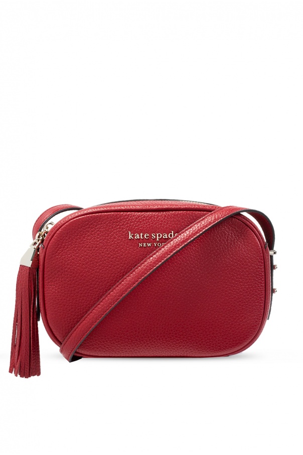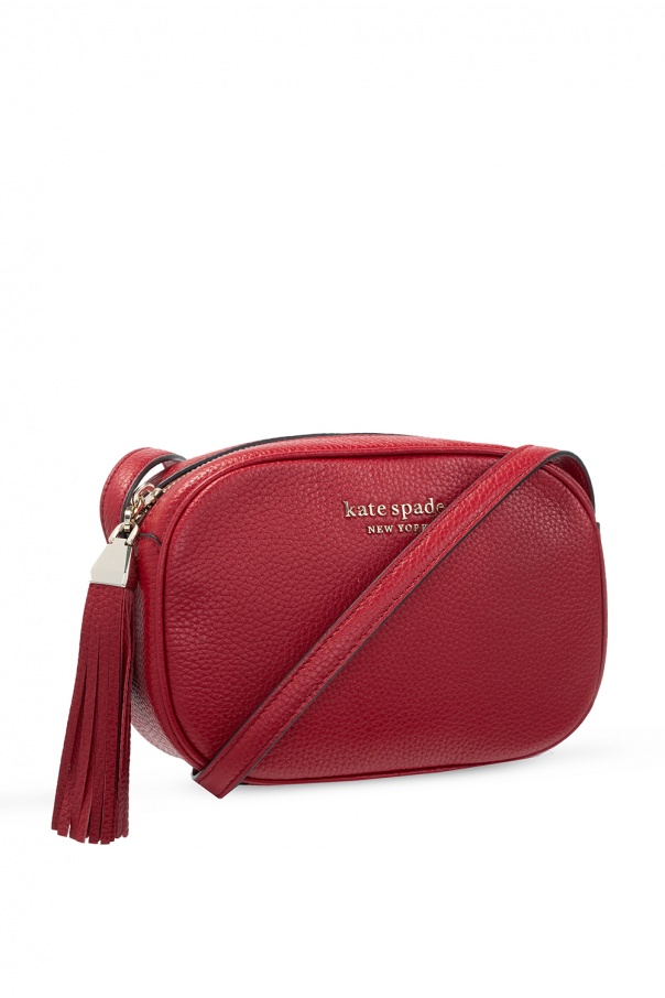 Red ‘Anabel’ shoulder bag from Kate Spade. Crafted from textured leather, this item fastens with a zip and is decorated with a logo appliqué. It is complete with a back slip pocket with a tassel, adjustable shoulder strap and one internal compartment with one zip pocket and one snap pocket.