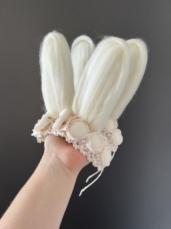 Ушки зайчика на обруче, выполненные из молочного фетра в комбинации с кружевом и бусинками. Ушки пушистые, мягкие. Возраст девочек отмечайте в любом месте в уведомлении.