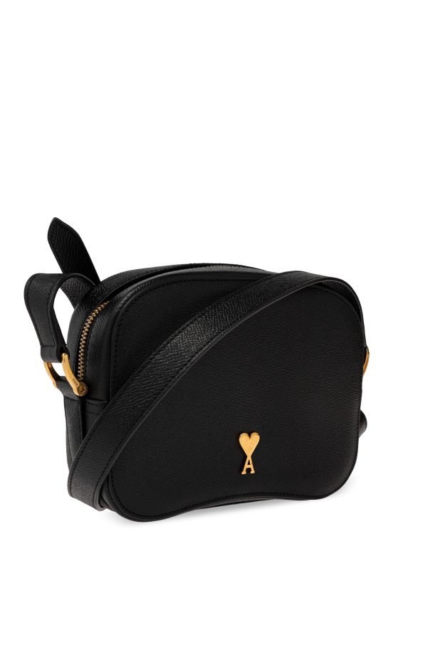 The ‘Paris Paris’ Shoulder Bag by Ami Alexandre Mattiussi epitomizes elegance and luxury. Featuring a rectangular, rounded shape, this compact bag is perfect for carrying everyday essentials with ease. Crafted from premium black grainy leather, the bag exudes sophistication. The high-quality material is a testament to the brand\'s commitment to excellence. The front of the bag proudly displays a gold heart-shaped logo with an \'A\' beneath it, a distinctive hallmark of the designer. Complementing this are the gold zippers and hardware, which add a touch of opulence and contrast beautifully with the black leather. The adjustable shoulder strap ensures a customizable fit for any wearer. Inside, the bag features a secure zippered closure, safeguarding your belongings. The rear slip pocket provides convenient access to items you need on the go. Why Purchase This Product? Exquisite design with a luxurious finish High-quality grainy leather for durability Signature gold heart-shaped logo Adjustable strap for personalized comfort Multiple pockets for organized storage