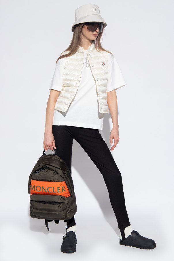 Black ‘Mon Mule’ slides from Moncler. Made of leather, this model features a distinctive strap with a snap closure, navy blue, white and red stripe detailing on the side and a black rubber sole with a shimmering finish.