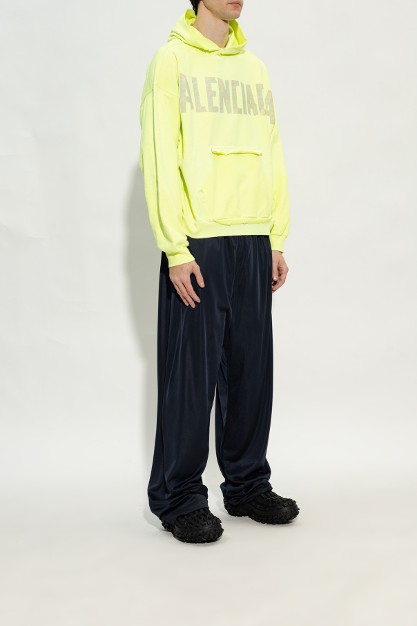 Black ‘Bouncer’ slides from Balenciaga. Made of rubber, this model showcases the brand\'s logo and a tactile tire tread sole which continues on the upper.