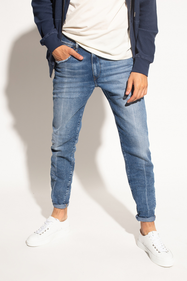 Blue ’D-Strukt’ jeans from Diesel. Crafted from stretch-cotton denim with a slim fit, this pair features a zip fly with a button, classic five pockets and a stonewashed treatment.