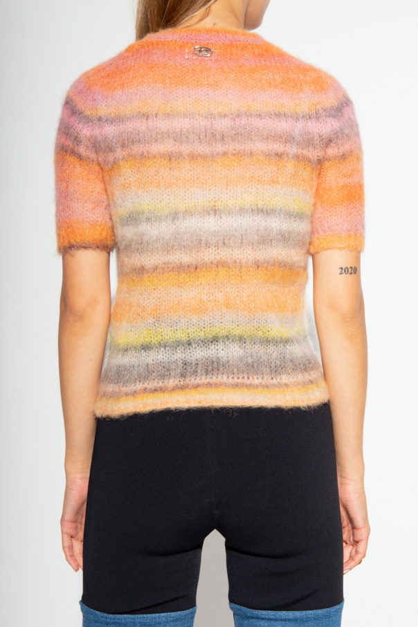 Multicolored ‘M-ICAELA’ sweater with short sleeves from Diesel. Crafted from a mohair and alpaca blend, this garment is enriched by a stripe pattern and ribbed trims at the crew neck, hem and cuffs.