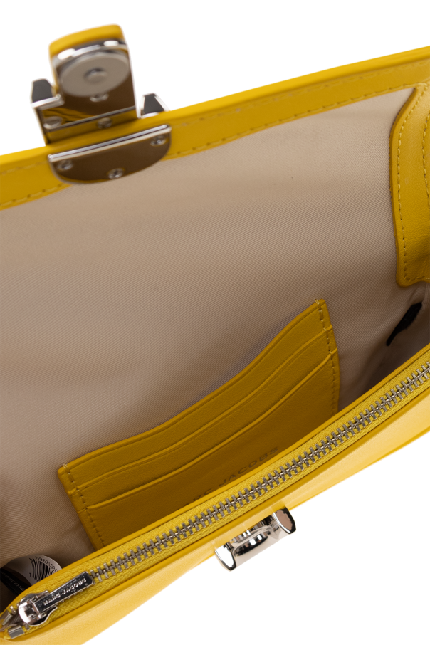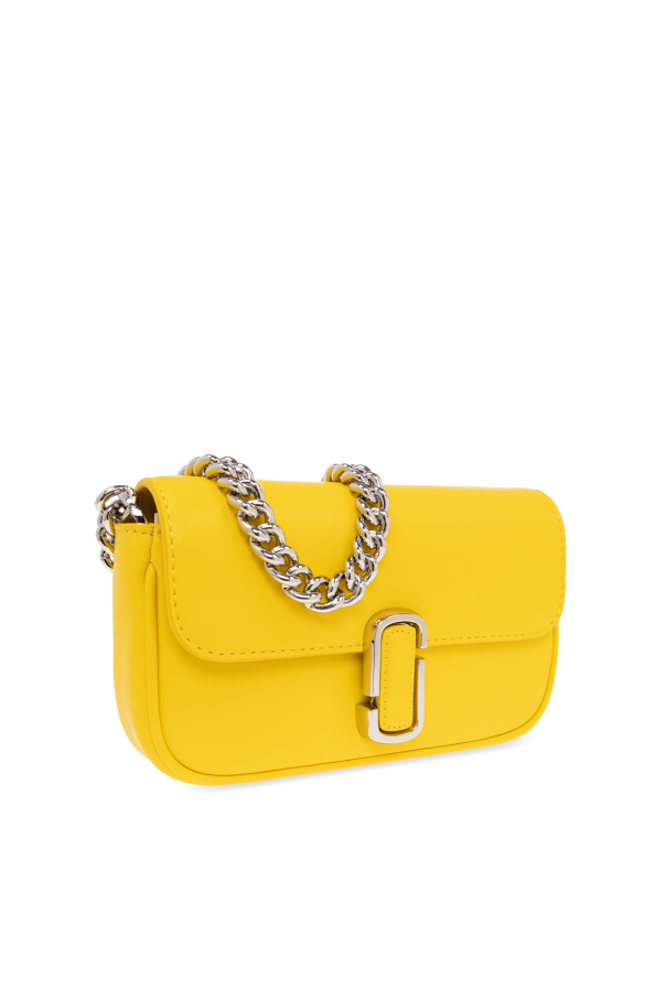 Yellow ‘The Marc Mini’ shoulder bag from Marc Jacobs. Made of cow leather, this design features a snap closure, back pocket, shoulder strap and silver-tone metal hardware. It has one internal compartment with two card slots and one zip pocket.
