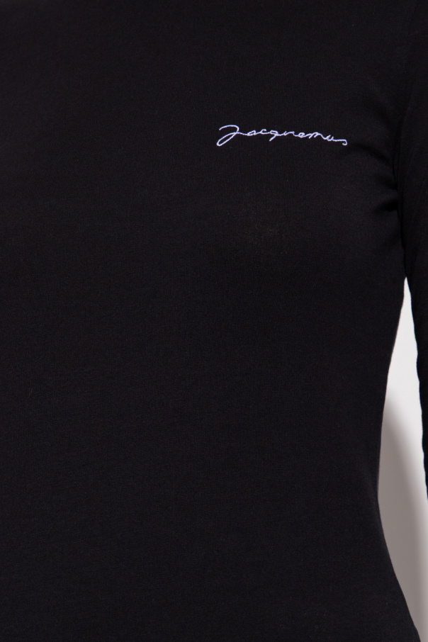 Black crewneck T-shirt from Jacquemus. Crafted from organic cotton, this style features long sleeves and white logo embroidery on the front.