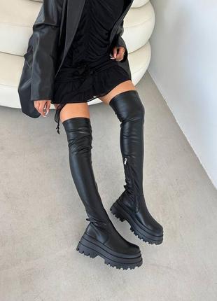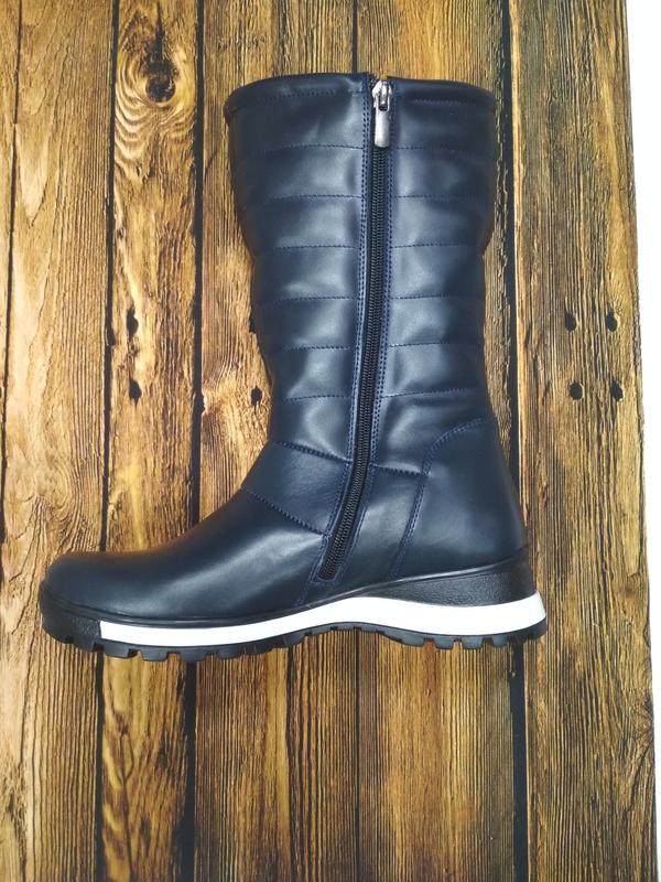 Шкіряні дуті чоботи. На блискавці. Всередині вовна. Висота халяви 29см. Висота підошви 3см у п'яті.. Колір-синій , чорний. Розміри 36,37,
