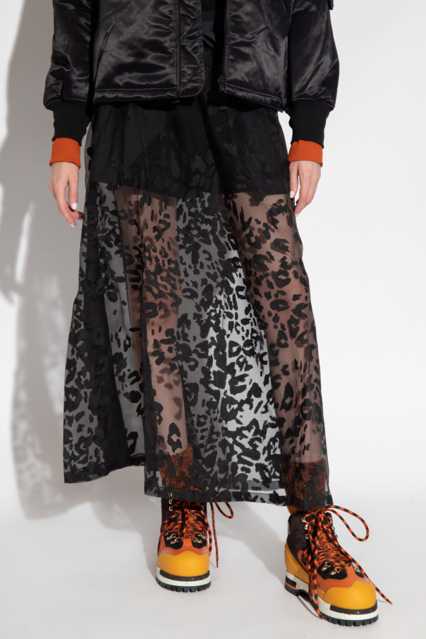 Black two-layer skirt with shorts from Y-3 Yohji Yamamoto. Printed at back with the brand\'s logo, this style features a drawstring waist and two frontal pockets.